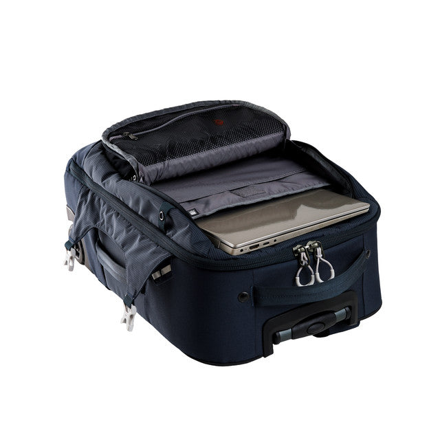 Der Cyprus 40 RV SW ist ein vielseitiger Trolley-Rucksack, der für Ihre Reiseaktivitäten konzipiert wurde. Die Abmessungen dieser Tasche wurden angepasst, um als Handgepäck zu gelten und Ihnen so zu ermöglichen, Ihre Tasche während des Fluges in Reichweite zu behalten. Dieser Mehrzweck-Rucksack ist äußerst praktisch, da Sie ihn sowohl als Trolley-Rucksack als auch als Rucksack verwenden können. Er verfügt über verstaubare Schultergurte, um Ihre Tasche ordentlich zu halten, wenn sie im Gepäckfach verstaut wird. Eine ausziehbare Radabdeckung schützt Ihre Kleidung vor Flecken, wenn Sie ihn als Rucksack tragen. Als Rucksack bietet diese Tasche ein gepolstertes Rückensystem für Komfort.
